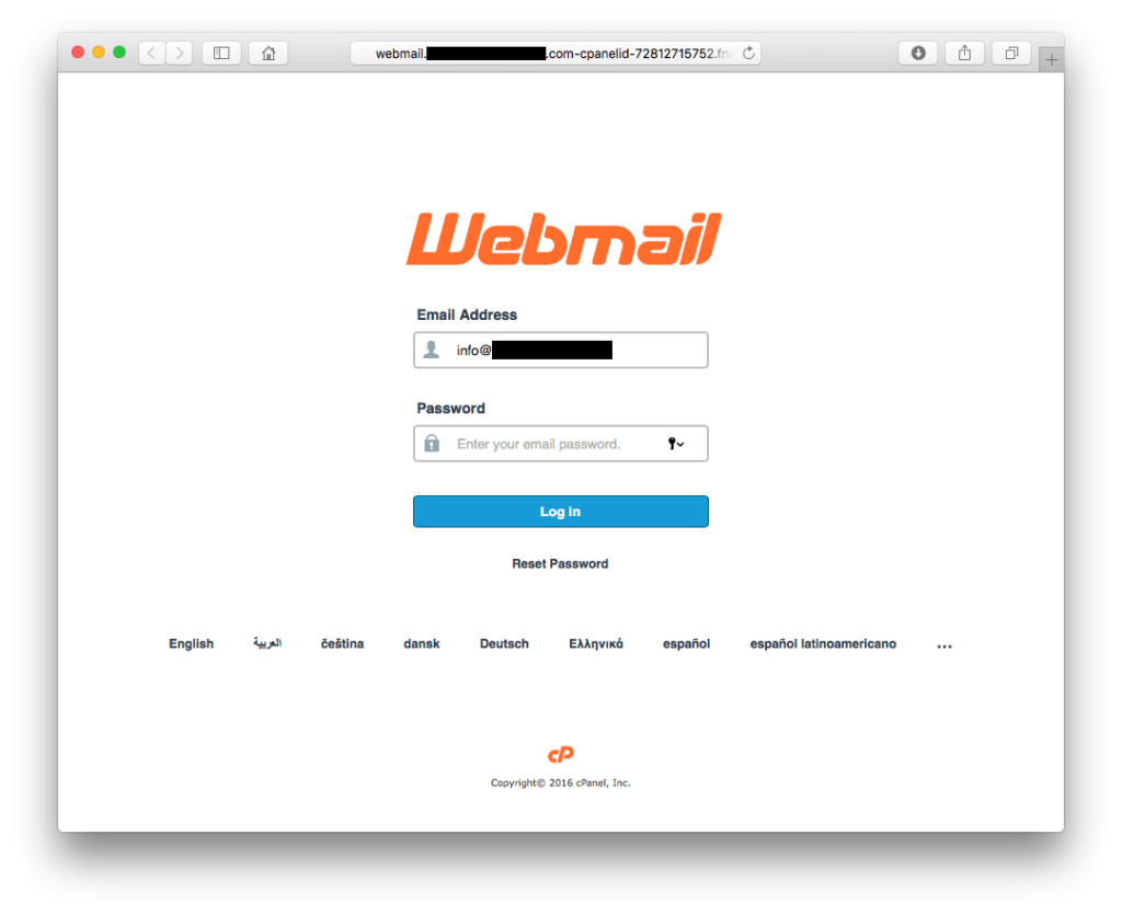 Denn der Link führ zu einer Webseite, welche dem original cPanel Webmail extrem ähnlich sieht. Wenn man sich nun aber einmal die URL Zeile genau anschaut, dann ist zu erkennen dass diese nichts mit dem cPanel Webmail zu tun hat: